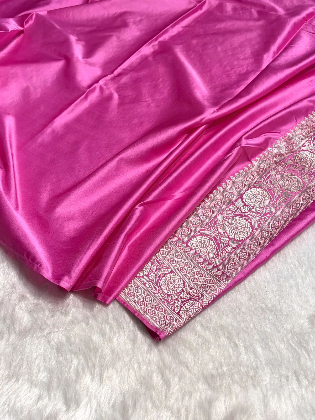 Beautiful Banarasi Mashru Silk Handloom Saree with pure zari weaving. This saree has a elegant shine. It’s lightweight, buttery soft, and drapes nicely — perfect for weddings and parties.