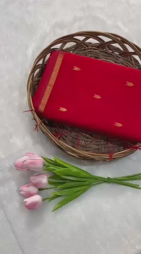 Traditional Pure Maheshwari Handwoven V Buti Small Border Saree 💖 🥻