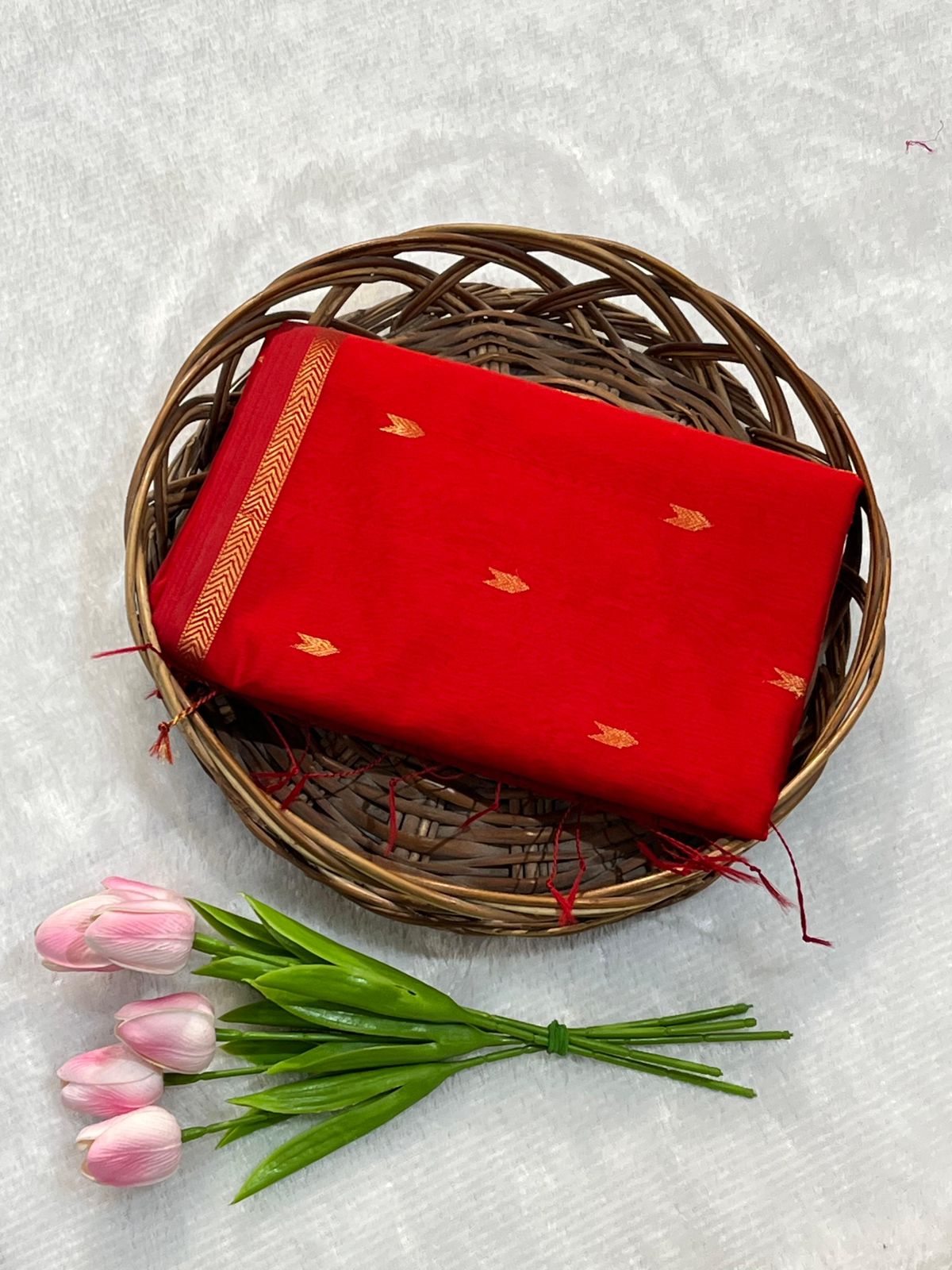 Traditional Pure Maheshwari Handwoven V Buti Small Border Saree 💖 🥻